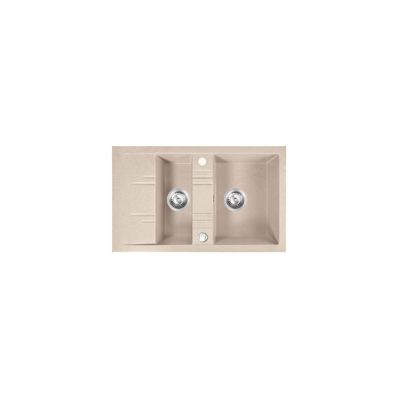Chiuveta bucatarie din granit, Ferro Mezzo II, dubla, de culoare nisip, cu dimensiuni de 79x48 cm.