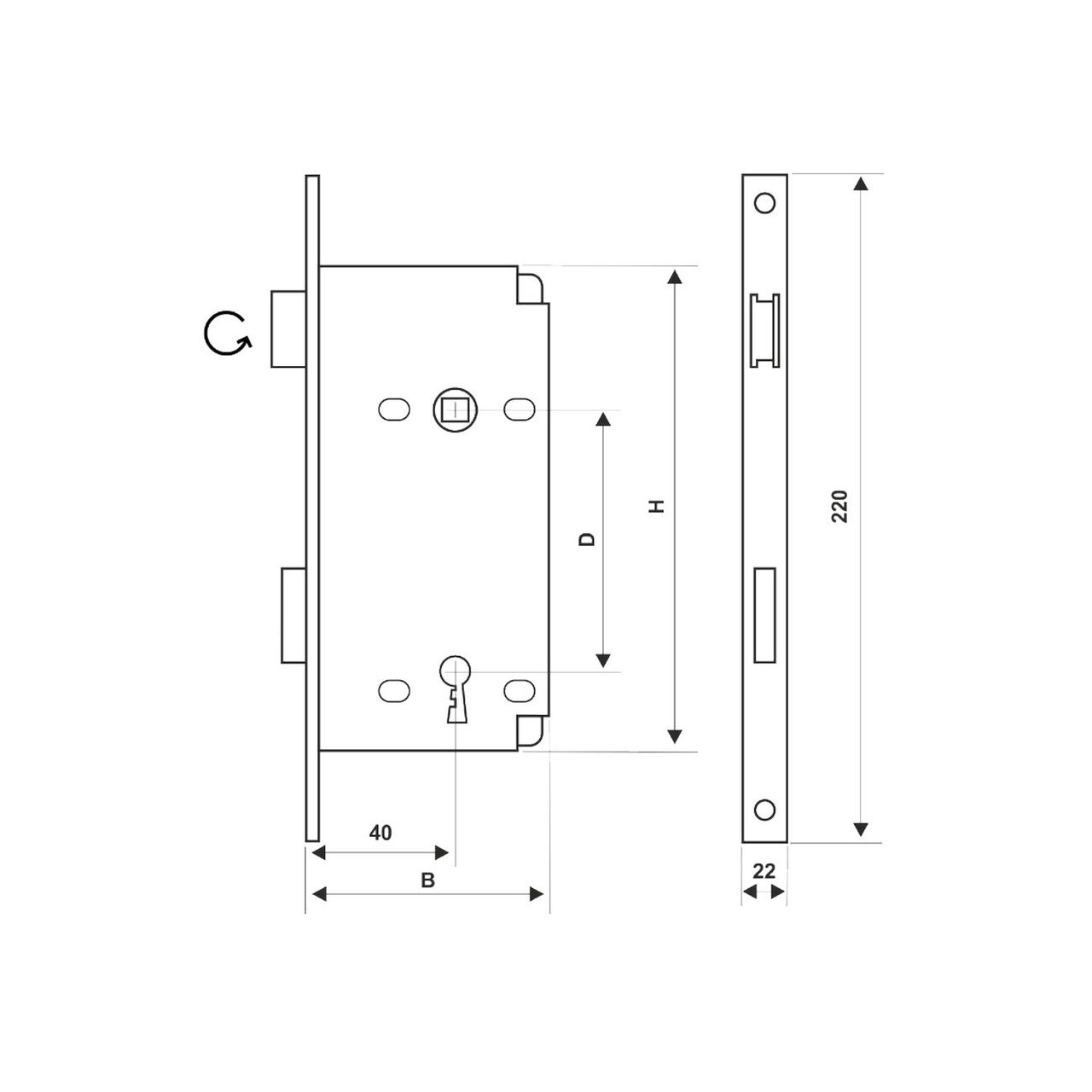 Broasca pt usa cu cheie 150x67mm