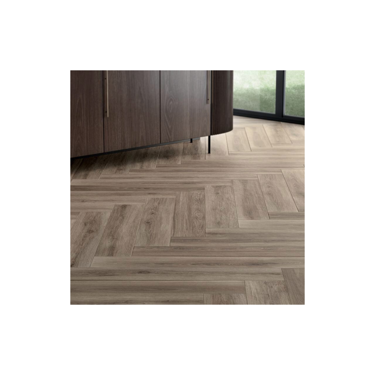 Gresia portelanata ABK Eco Chic Avana, mat, 8.5mm, 20x120cm, 1.44mp/cut este o gresie rectificata de inalta calitate, cu aspect de lemn.