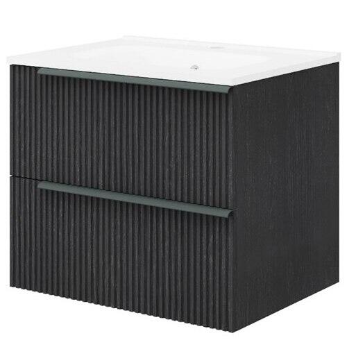 Mobilier baie cu lavoar Savini Due Sidney 61cm, negru, 2 sertare soft close