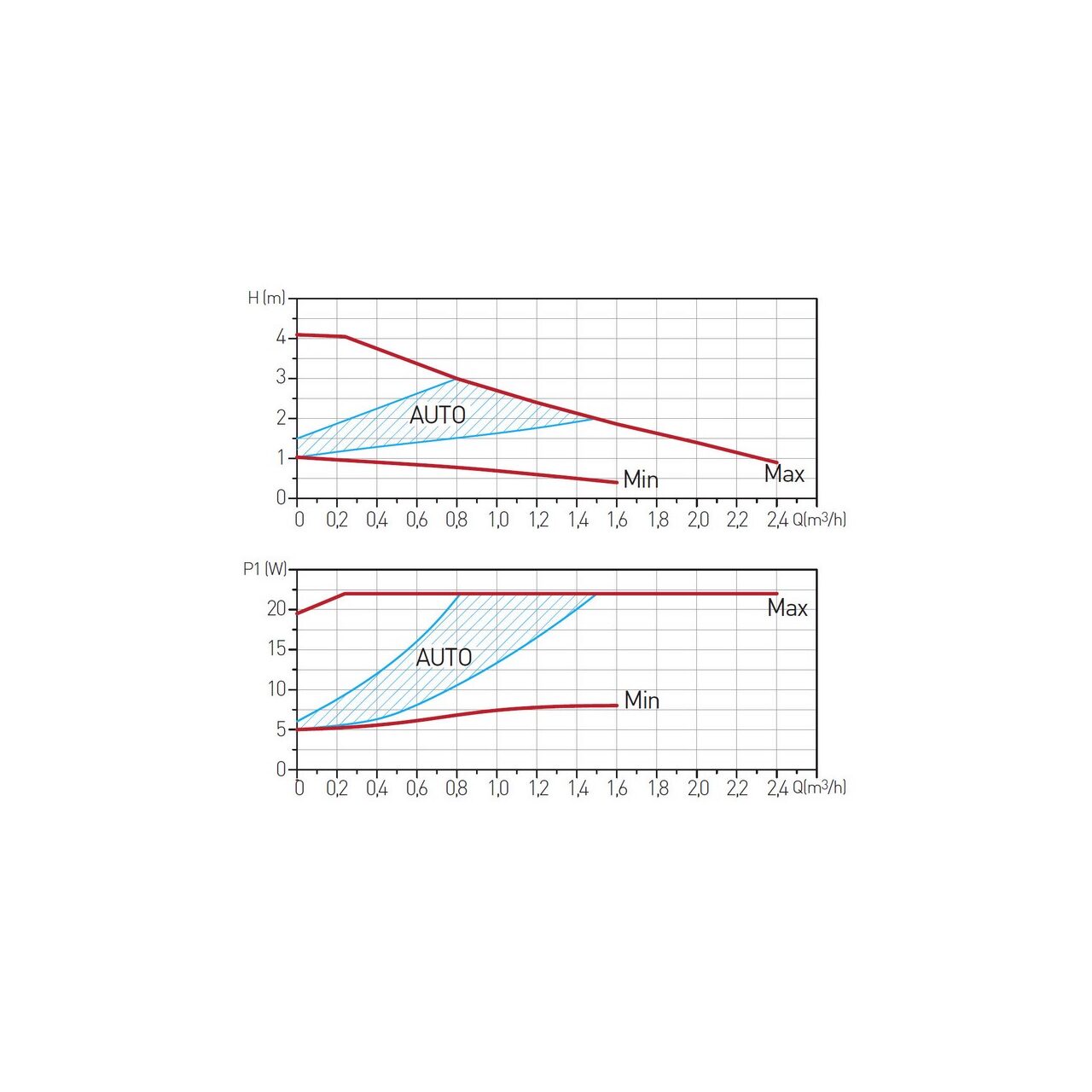 - Tipul lichidului pompat: Lichide care nu contin minerale, particule solide in suspensie, fibre, substante uleioase. Lichidul trebuie sa fie neutru din punct de vedere chimic cu parametri similari cu apa. Lichidele care au o vascozitate mai mare decat apa pot produce o deteriorare semnificativa a parametrilor de functionare a pompei. Pompa poate functiona si cu un lichid avand o concentratie de pana la 30% glicol, insa in acest caz randamentul va fi redus.