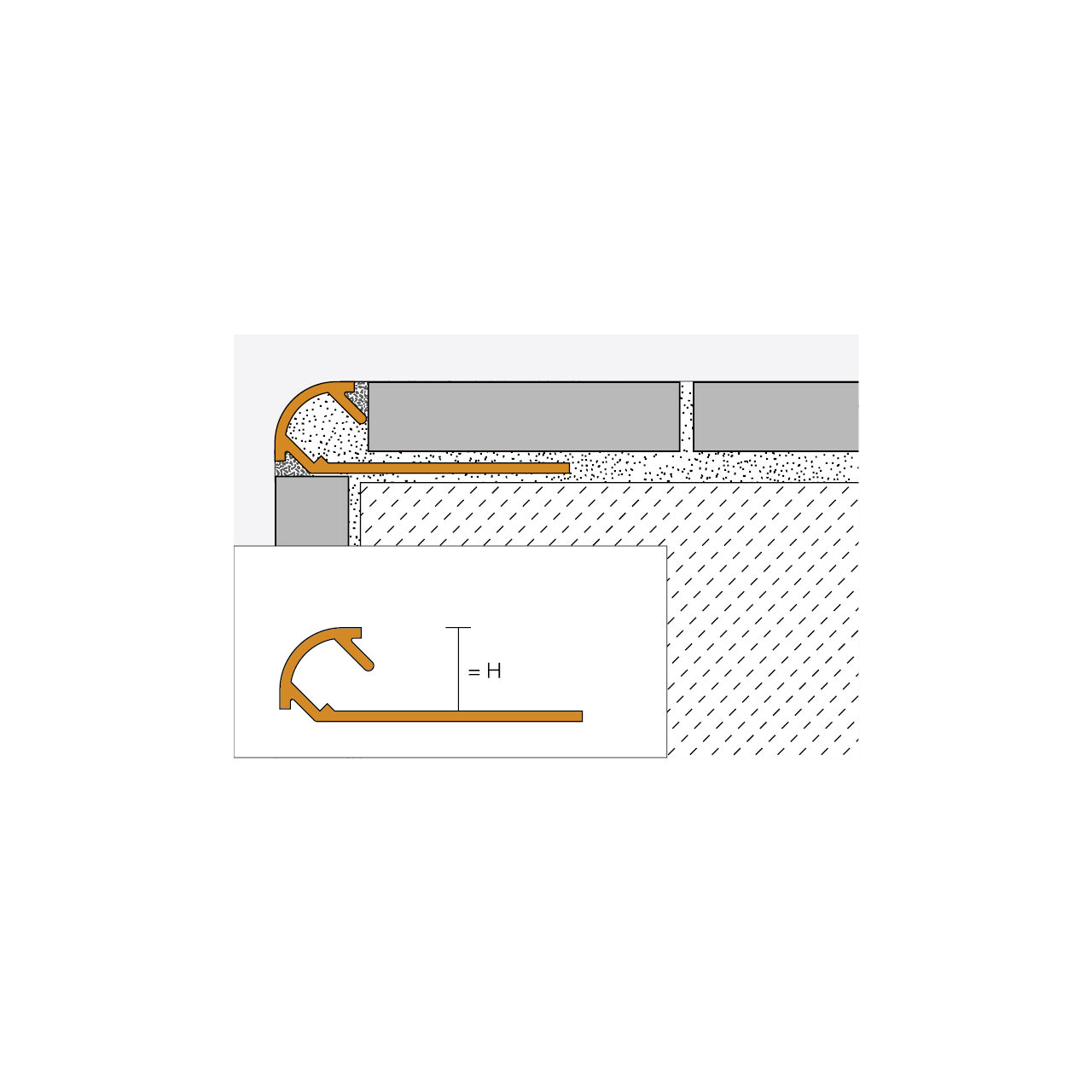 Schlüter-RONDEC-TS este un profil rotunjit din aluminiu cu un strat texturat special pentru colturile exterioare ale peretilor si marginile acoperirilor cu gresie. Distantiatorul de rost integrat formeaza o cavitate de imbinare definita cu placa ceramica. Zona vizibila a profilului de aluminiu cu stratul sau texturat formeaza un colt exterior rotunjit simetric.