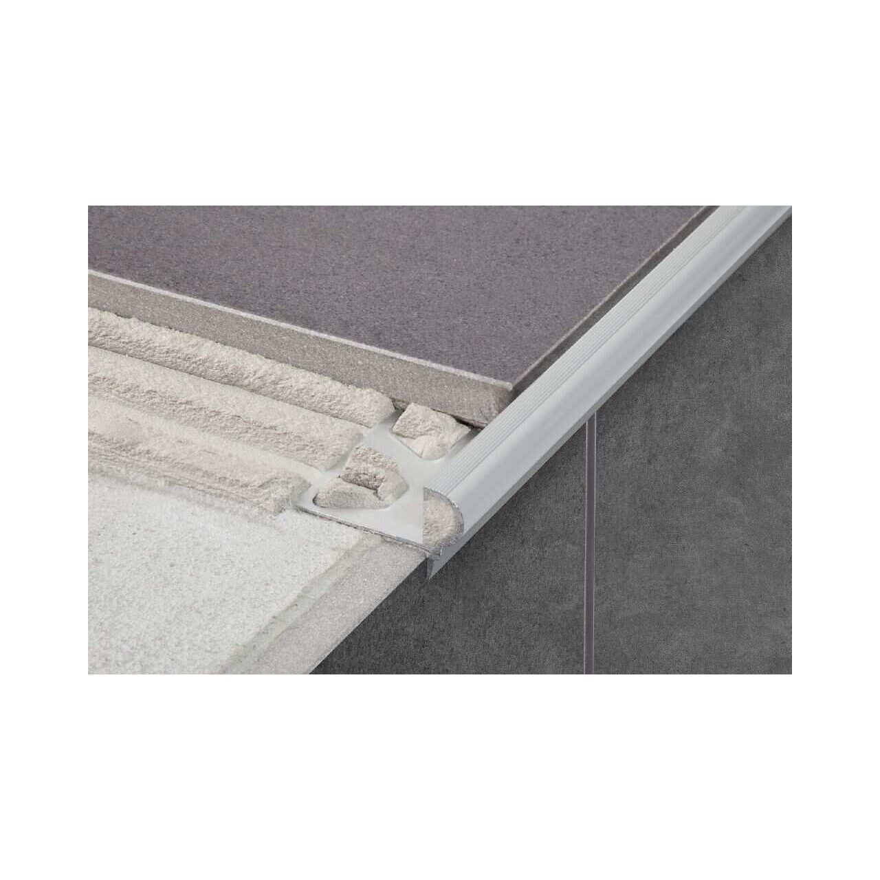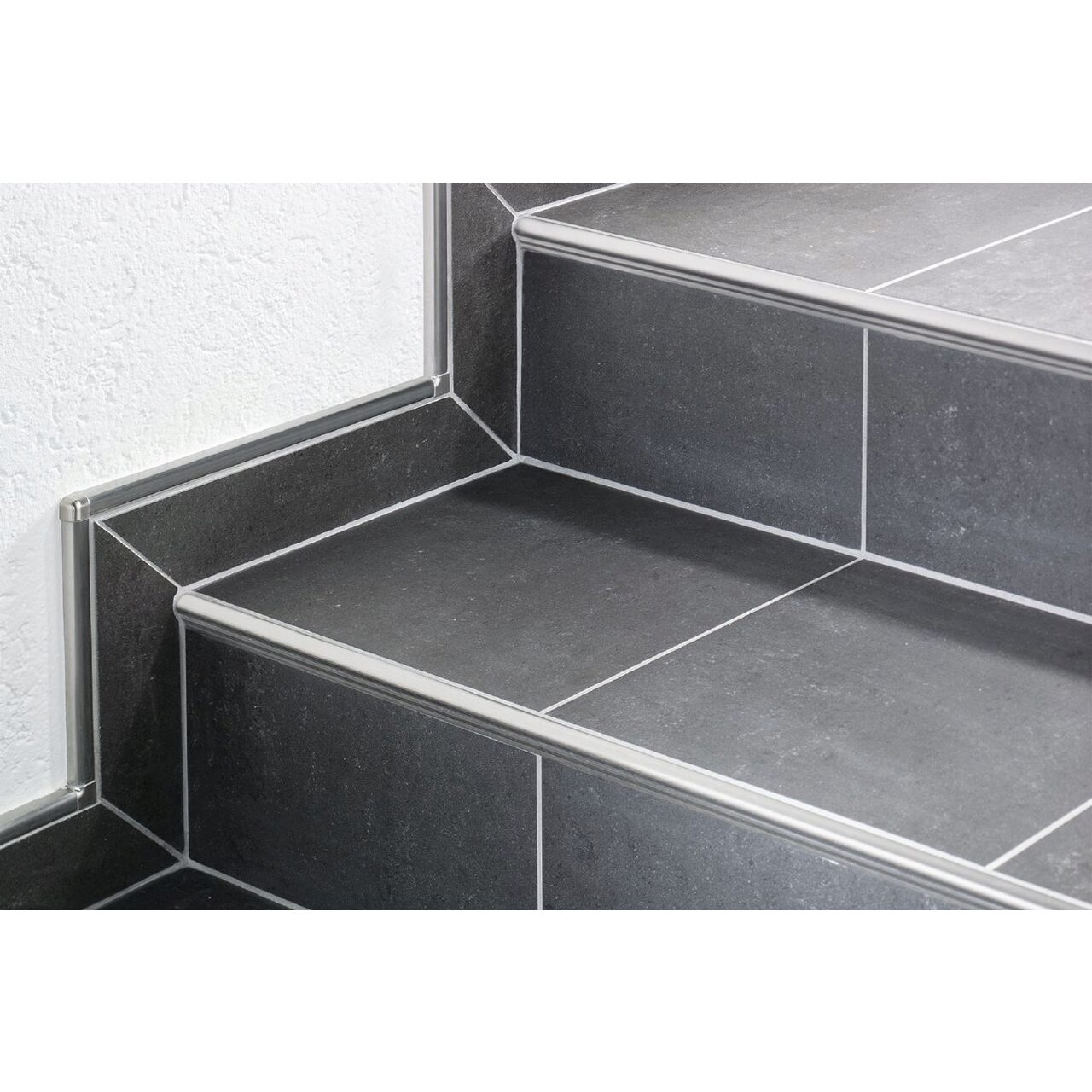 Schluter®-TREP-FL-AE este un profil decorativ cu o margine rotunjita proeminenta care poate fi integrat in scari acoperite cu ceramica sau piatra.