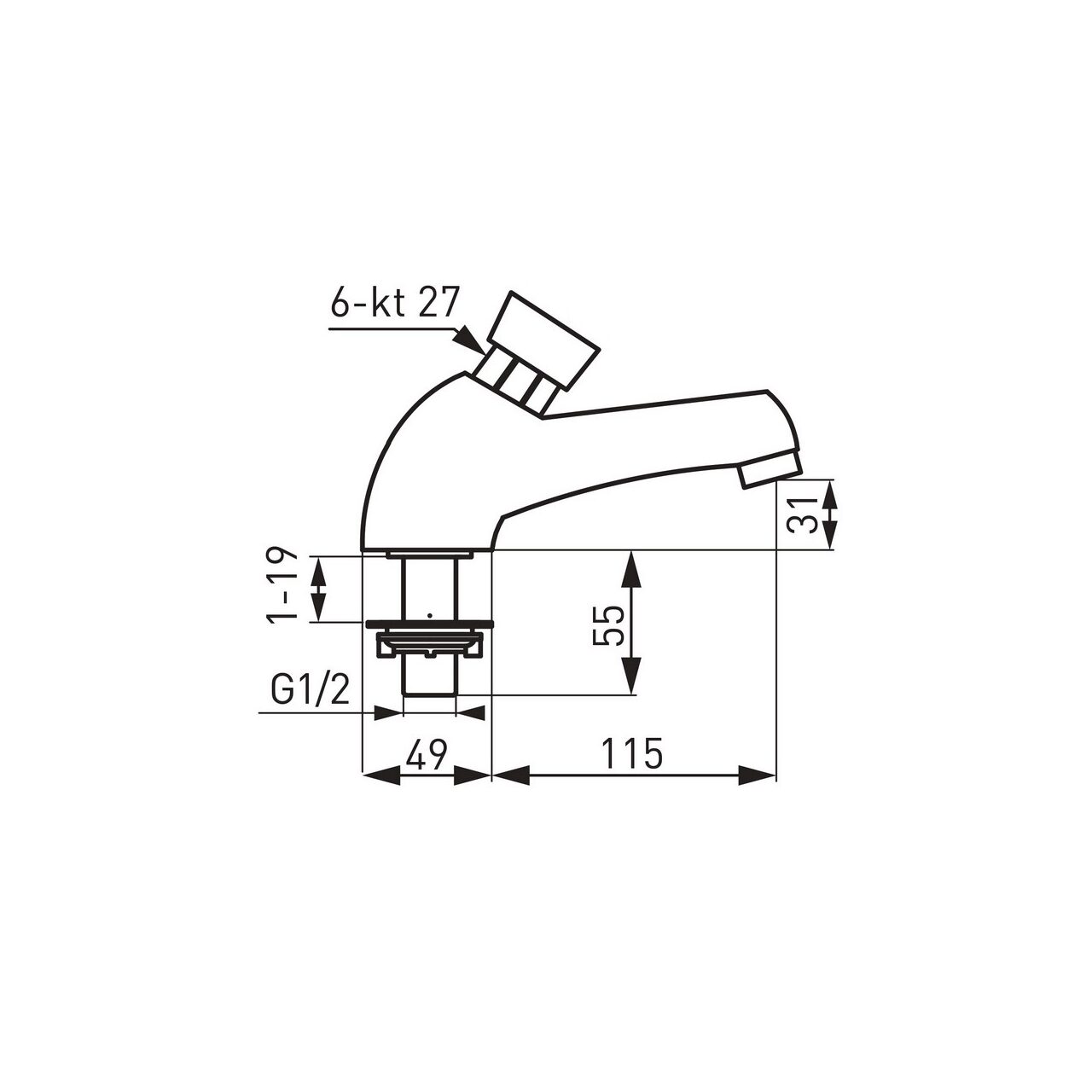 Robinet lavoar cu temporizare pt. apa rece, Ferro Press, crom